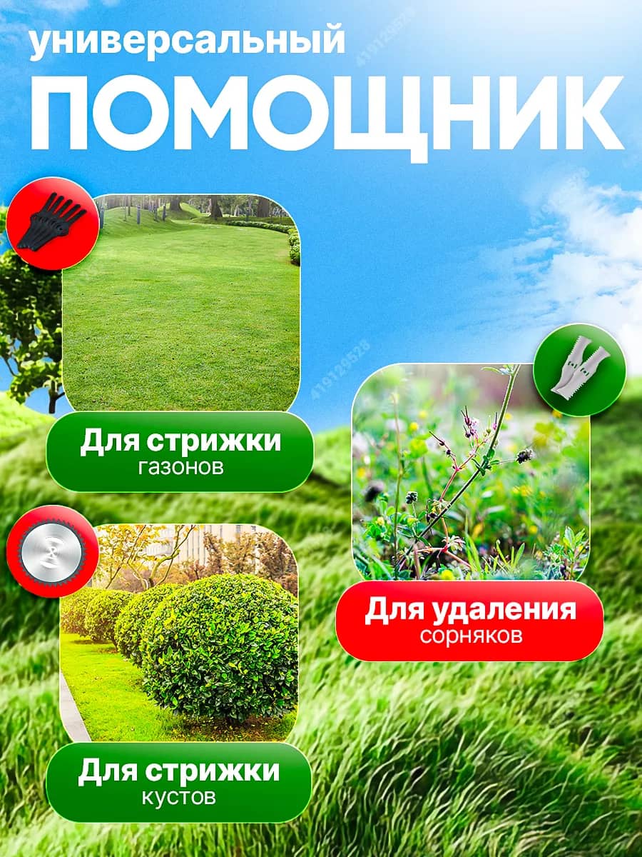 Это устройство имеет широкий спектр применения и подходит для стрижки небольших кустарников, парков, дач, тротуаров, террас и многого другого.